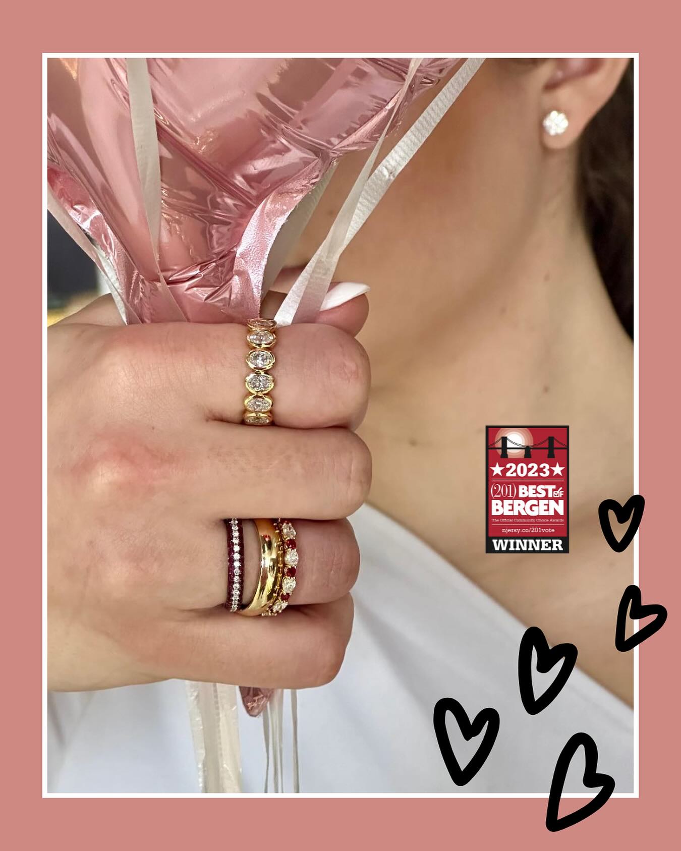 It’s a good rule of thumb to always leave at least one finger on each hand bare. Too many stacks will overwhelm the eye. When you’re wearing the finest women’s rings in Bergen County, you want to make sure they shine.