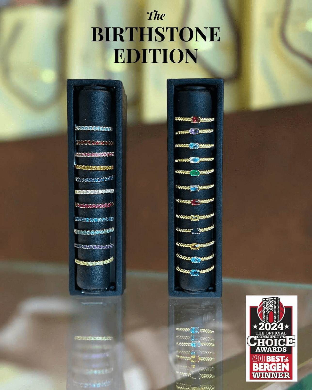 One of the best things about ring stacking is that it can get you out of your comfort zone. While you can never go wrong with a classic diamond ring stack, don’t be afraid to try brightly colored stones or new metals. Birthstone stacking rings that represent multiple children’s birthdays are a meaningful and colorful look for the stylish mom.