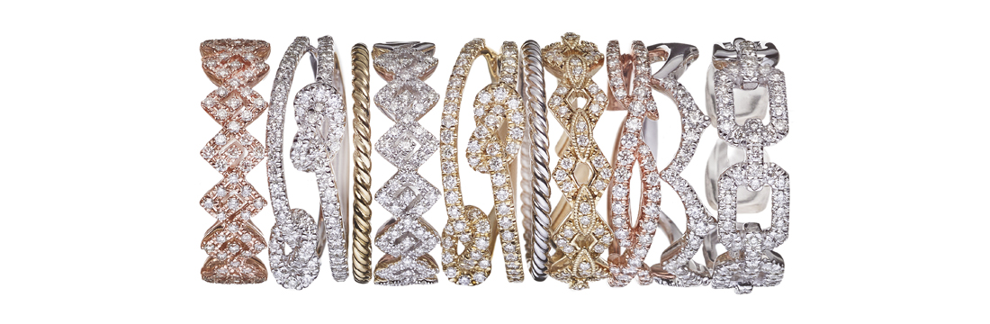 Stackable rings are meant to be worn together on the same finger, creating a layered and personalized look by mixing and matching styles, colors, and textures. Create a custom engagement ring stack, or grow over your stack over time by celebrating important milestones such as anniversaries, births, job promotions, or travel mementos. Ring stacks are the perfect versatile addition to your jewelry collection!